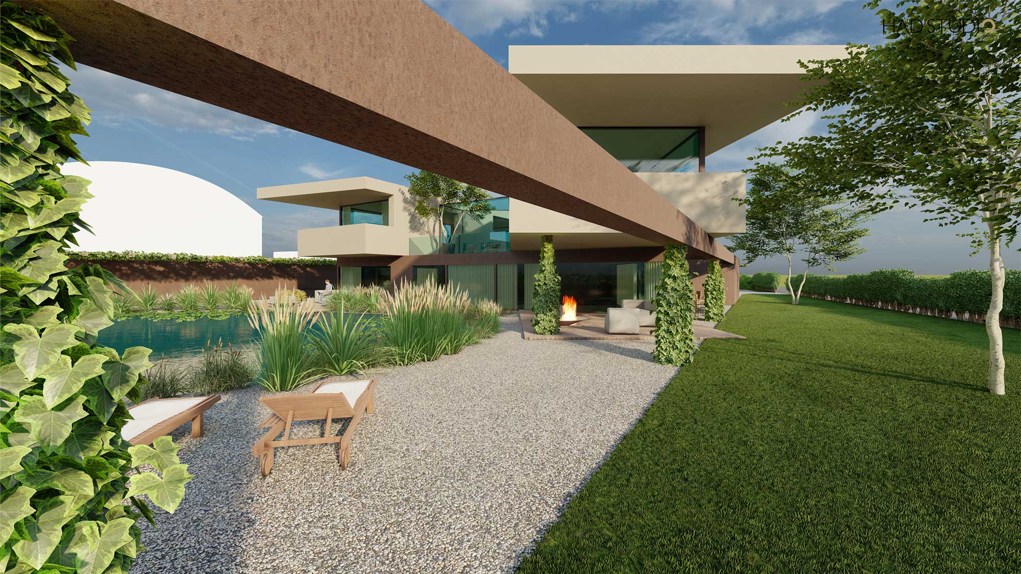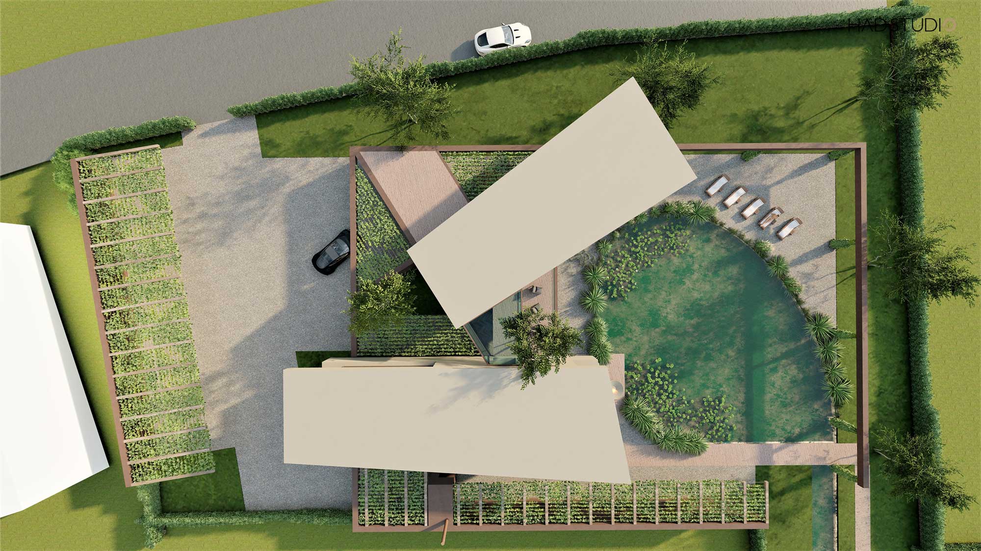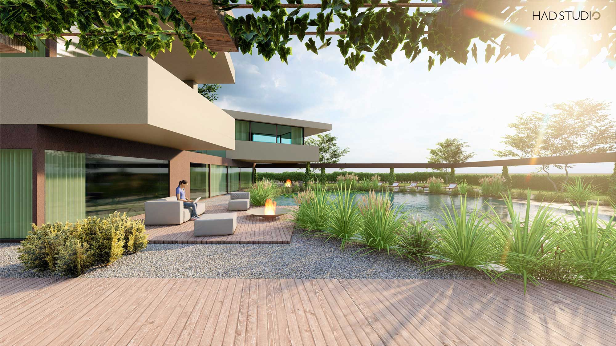 In AUREA HOUSE le nuove funzioni risultano interconnesse da un approccio integrato rivolto alla progettazione rigenerativa dell’acqua, grazie alla riorganizzazione della rete idrica. La scelta di immergere l’intervento nella natura e di concepire uno stile di vita intrinsecamente legato allo spazio aperto, ci ha condotto alla ricerca di una vera e propria simbiosi tra lo spazio interno e quello esterno.