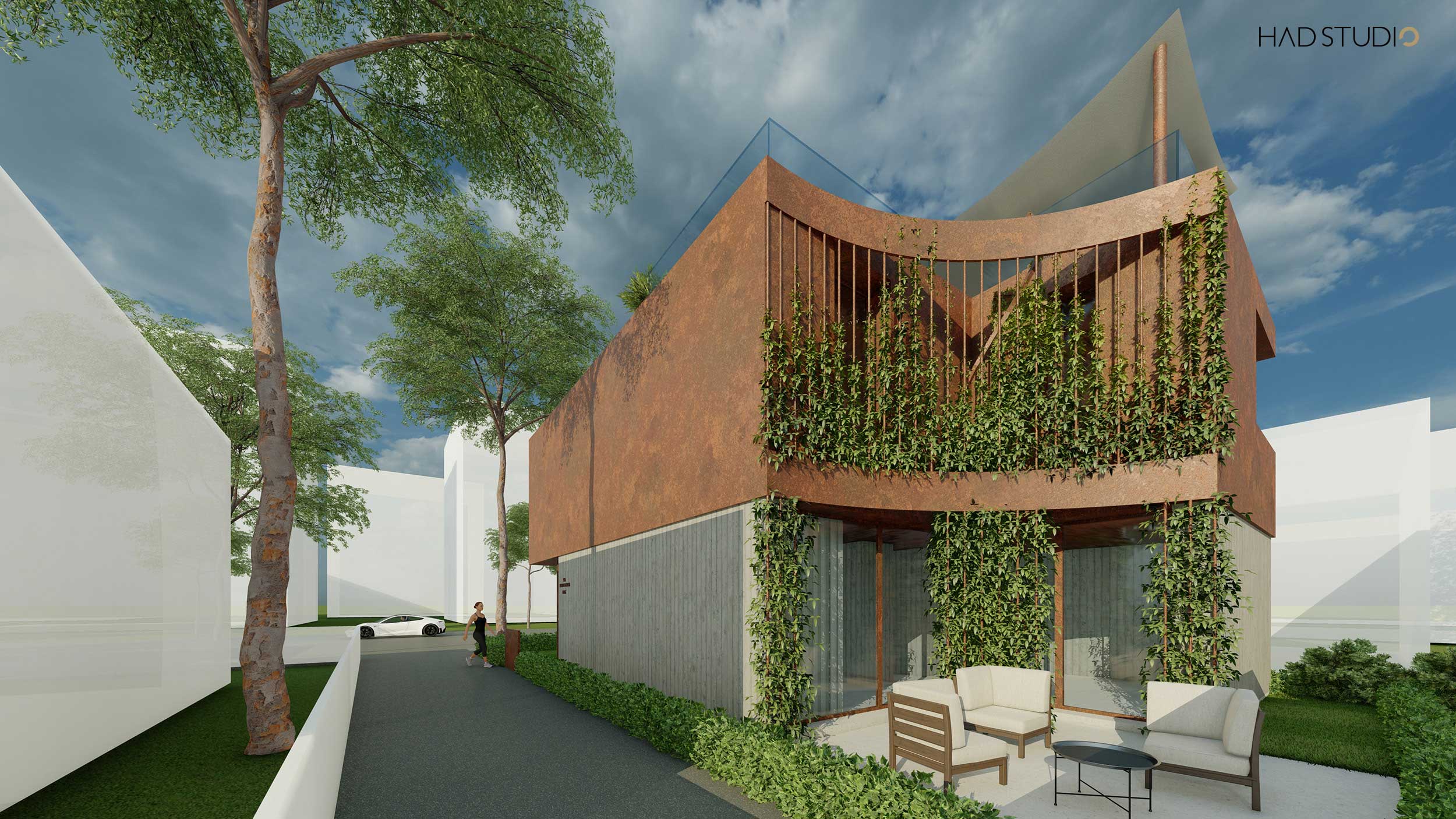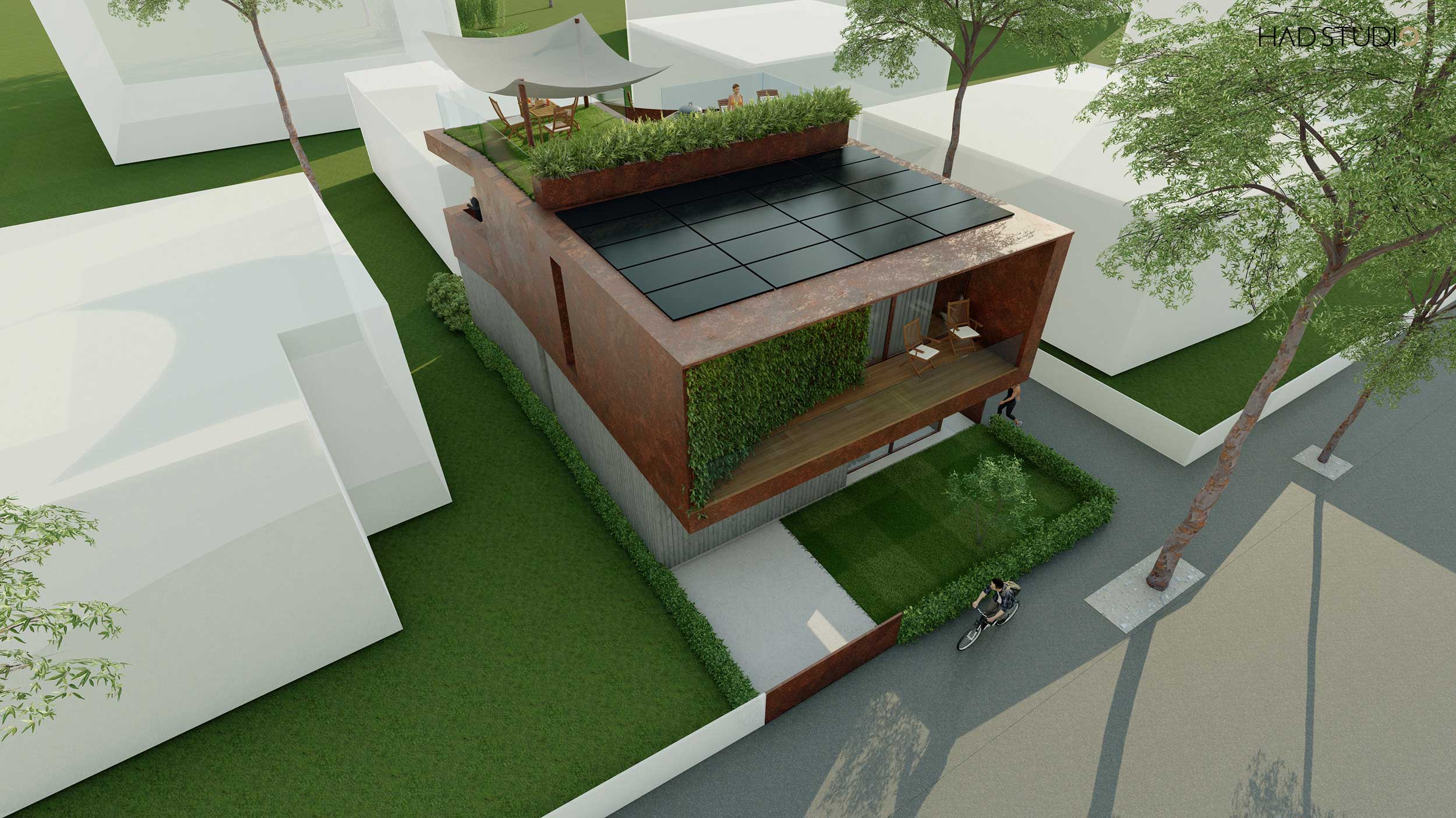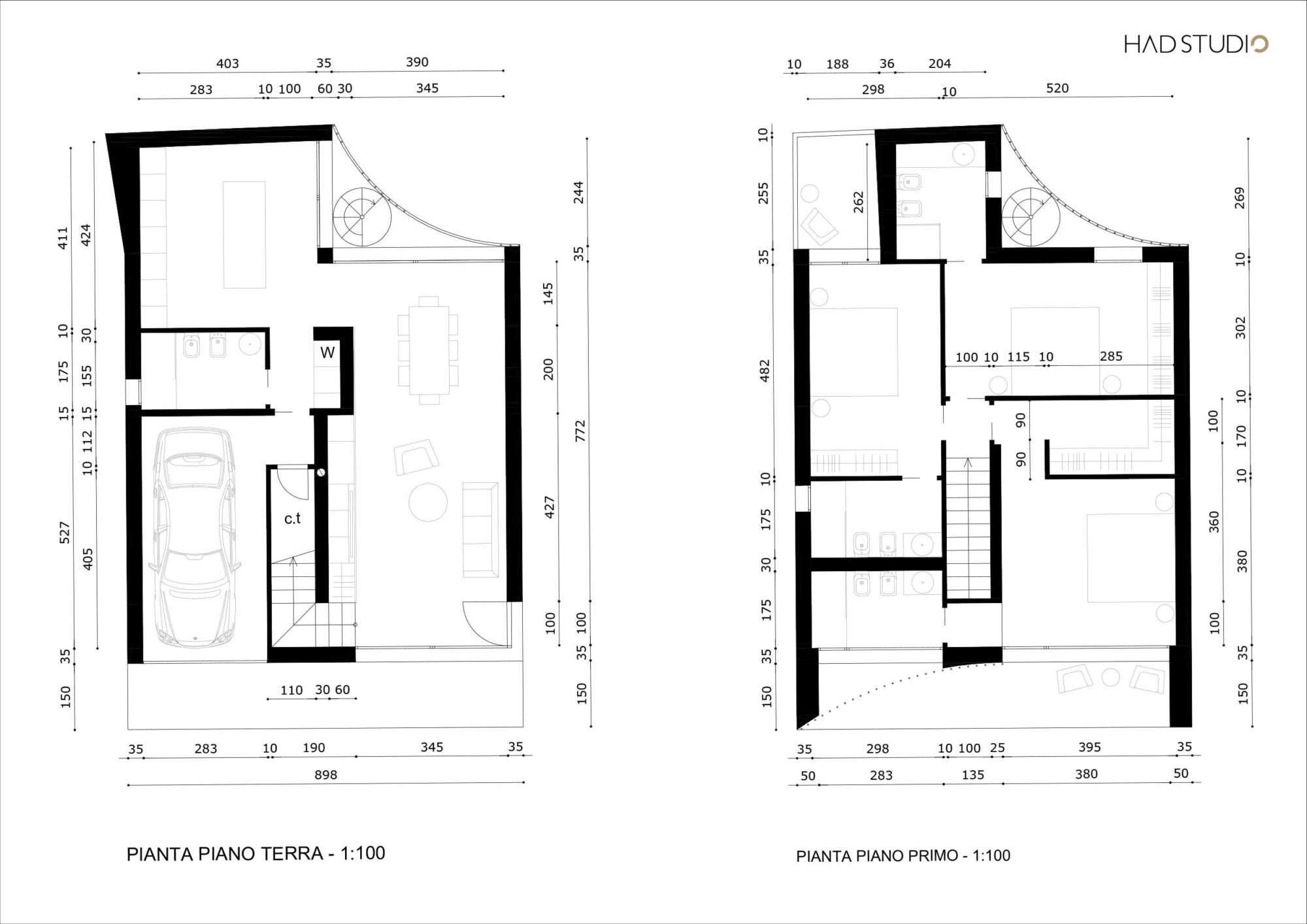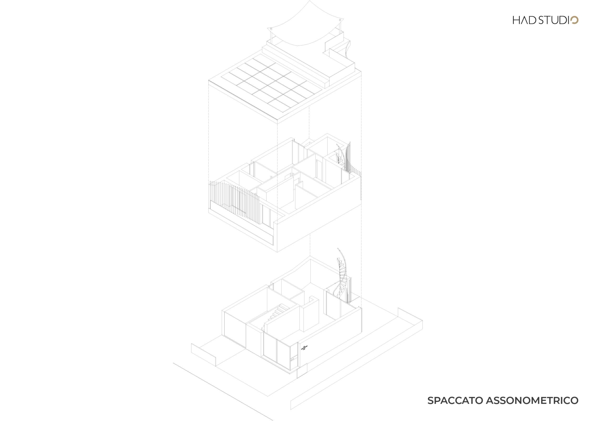 Al piano terra trovano spazio gli ambienti living e di servizio e, al livello superiore, un’ampia zona notte con tre camere padronali con bagno con terrazze dedicate. In copertura un ampio solarium caratterizza e dialoga con l’assetto impiantistico della copertura, mitigato dalla vegetazione.