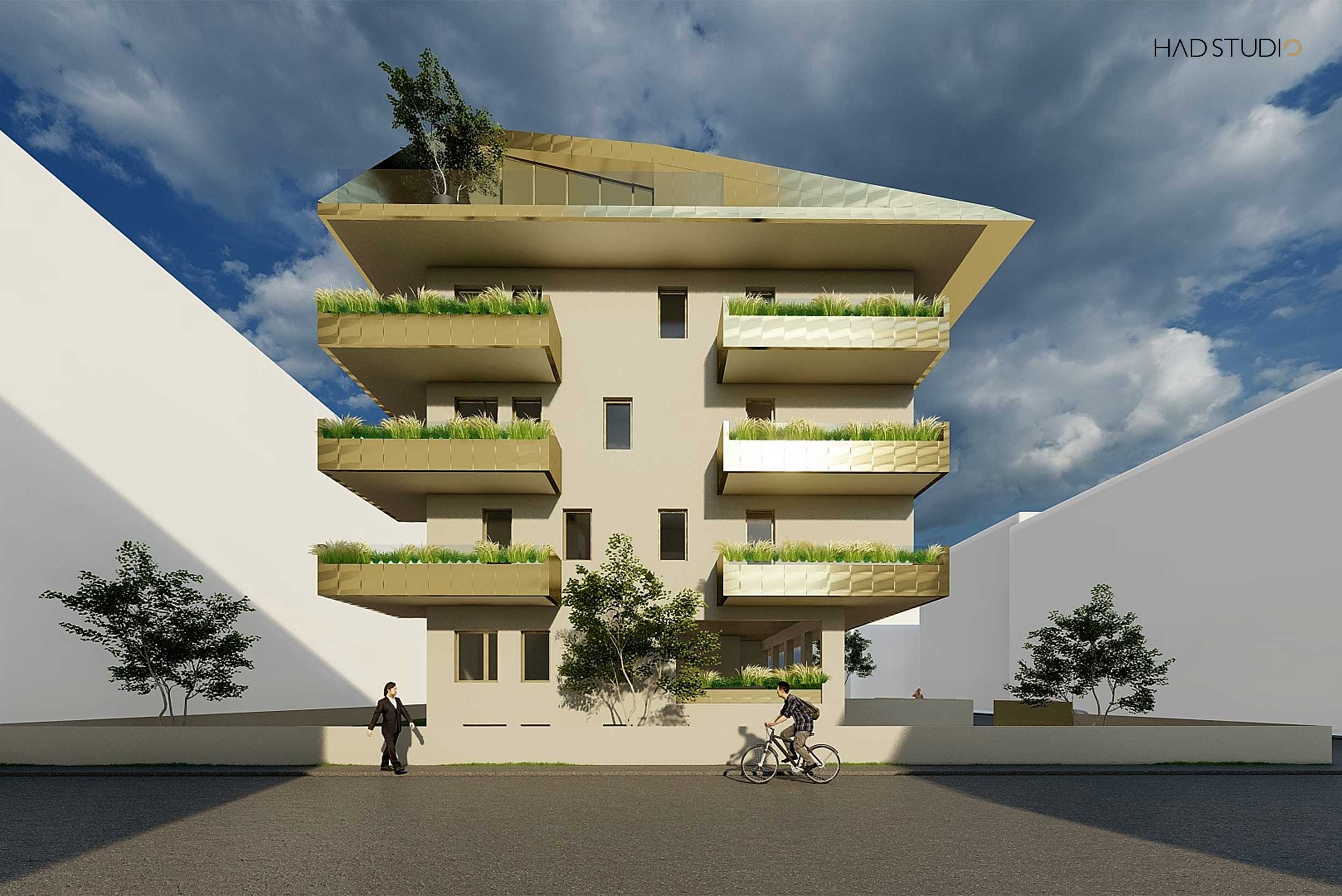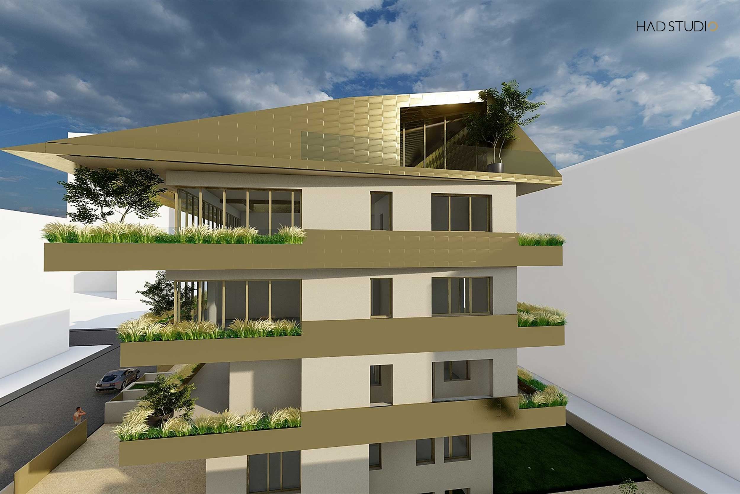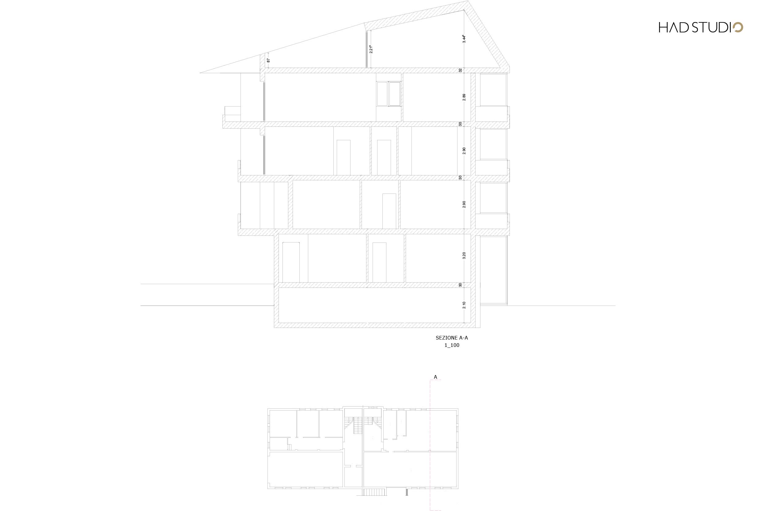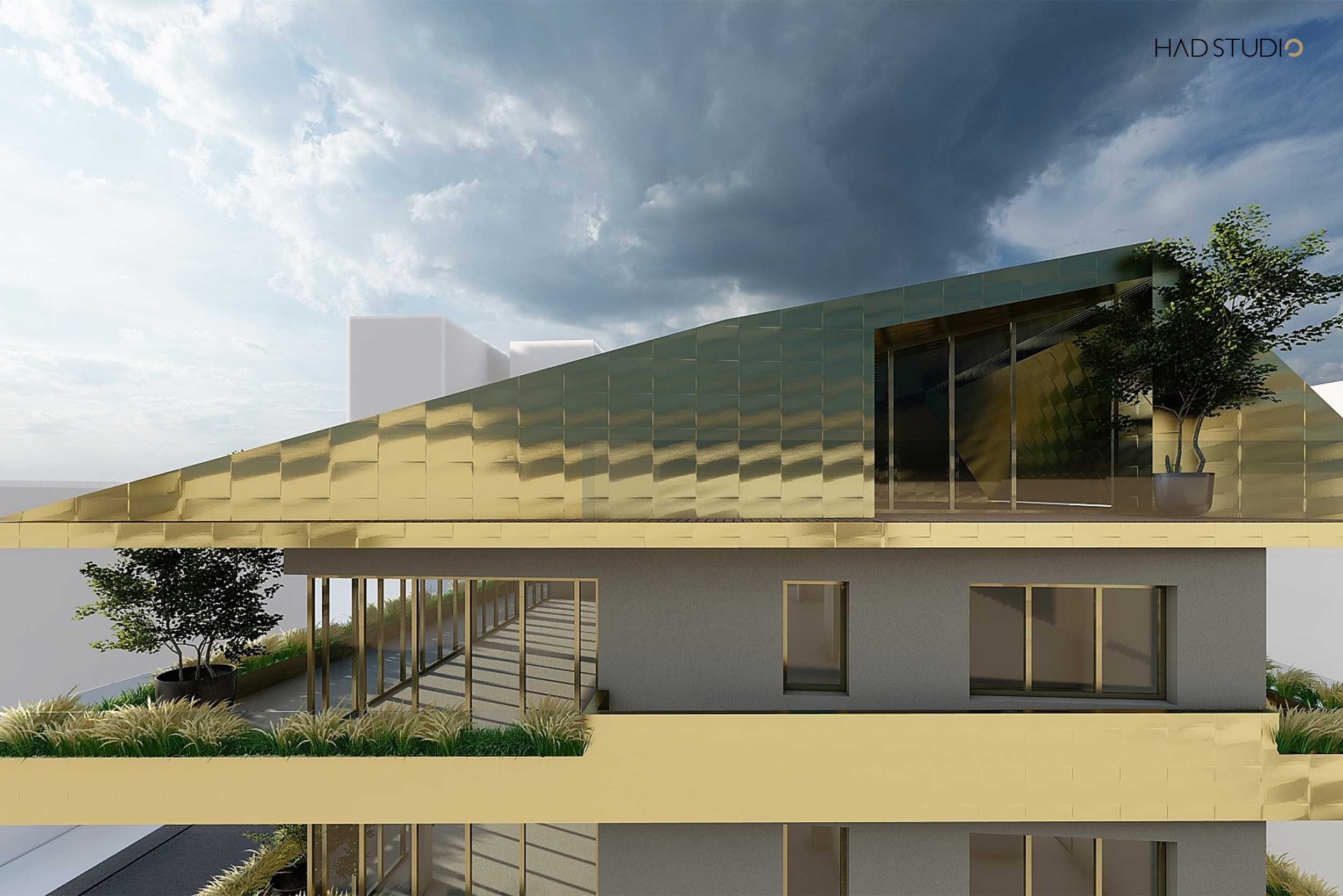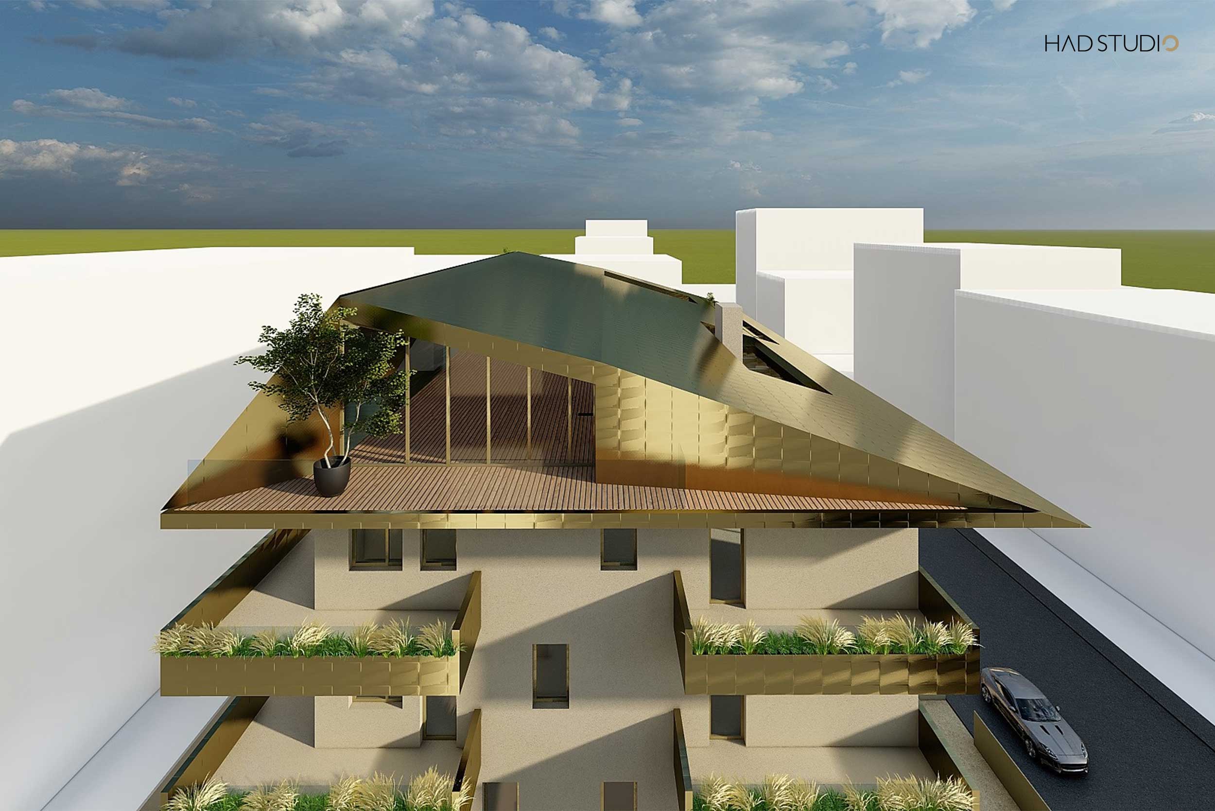 Le sei unità sono state distribuite con differenti metrature ai primi 3 livelli in risposta alle esigenze della committenza, generando al quarto piano un “tetto funzionale” che ospita al suo interno ambienti abitabili con ampi spazi esterni, ponendosi come elemento iconico dell’intero progetto.