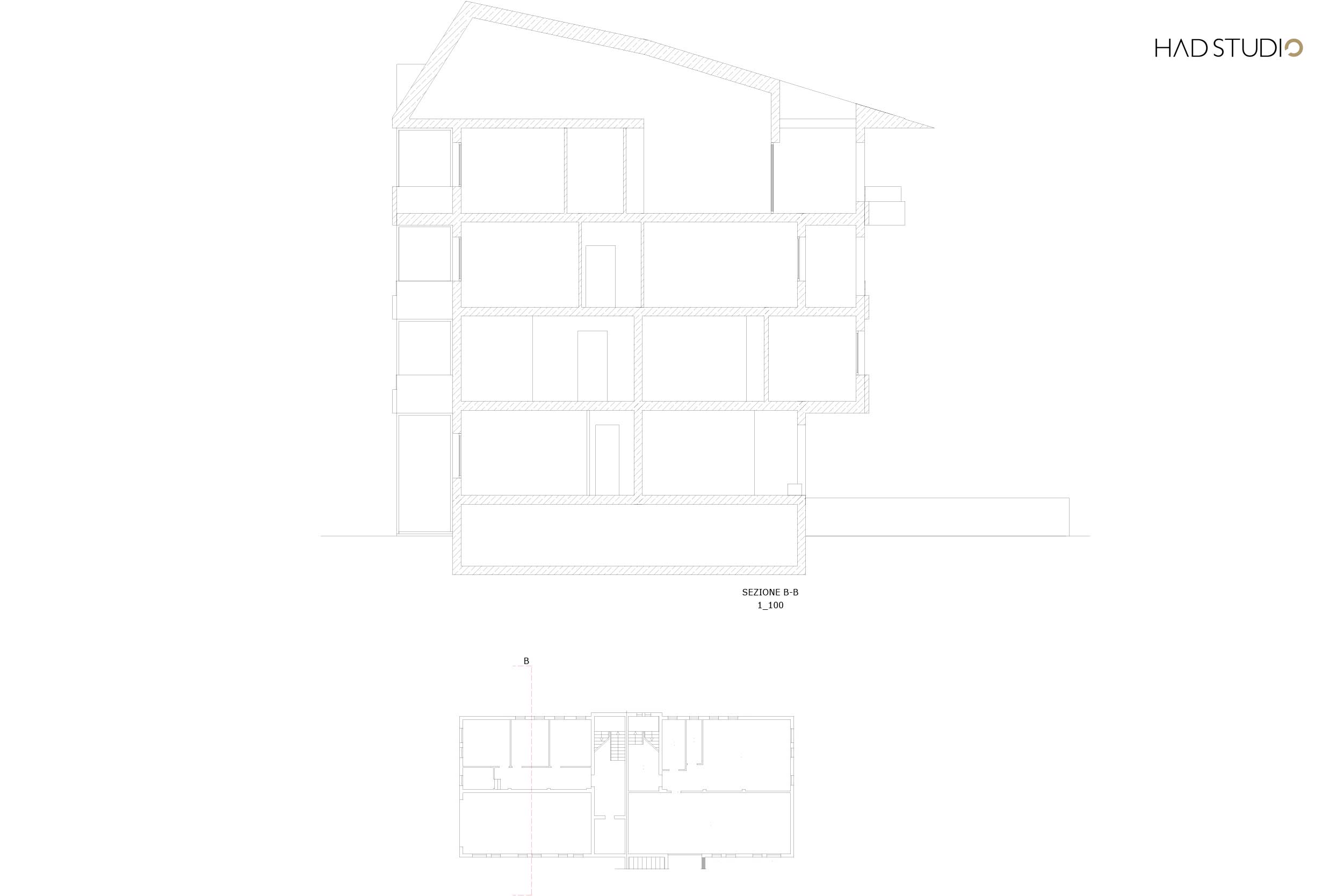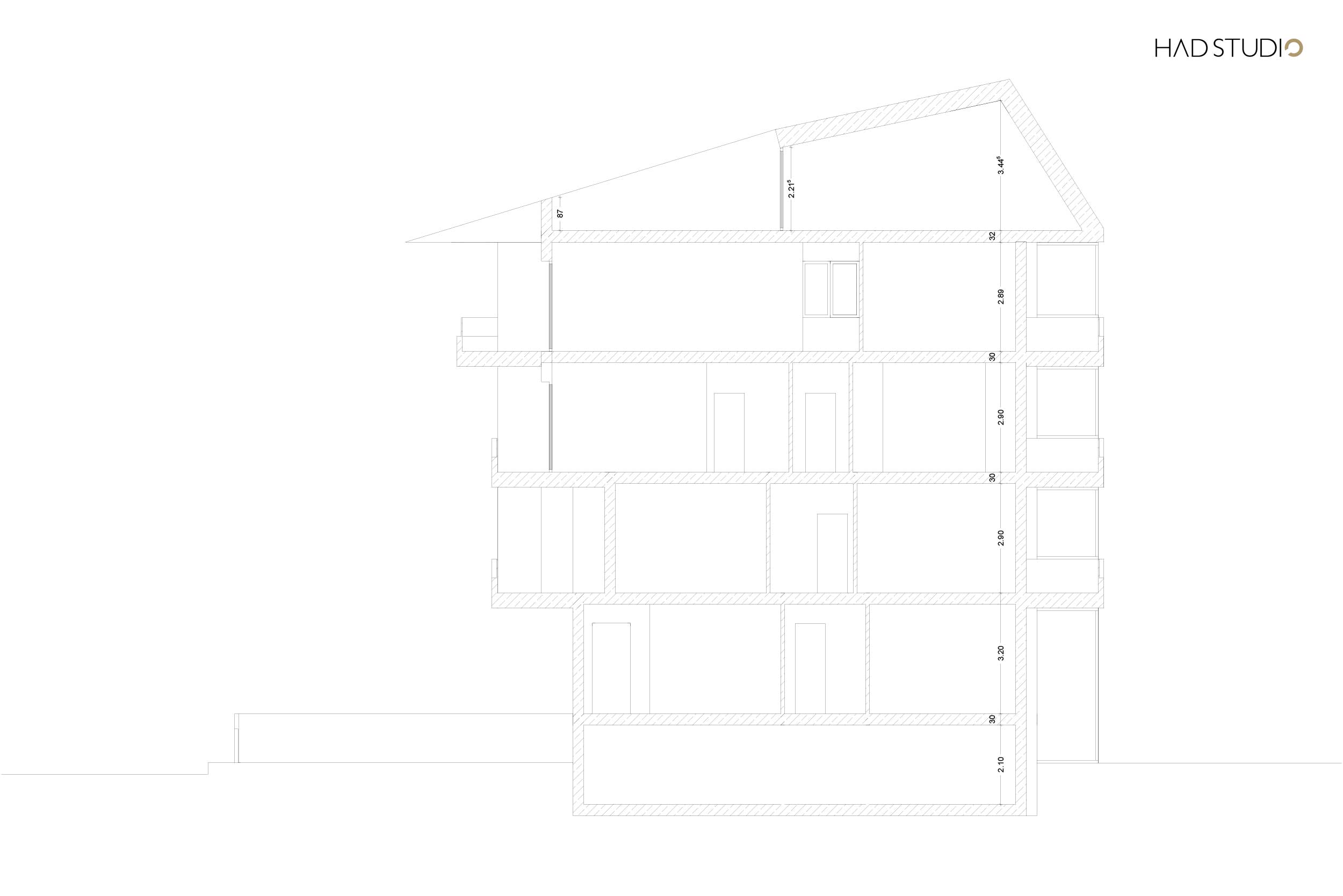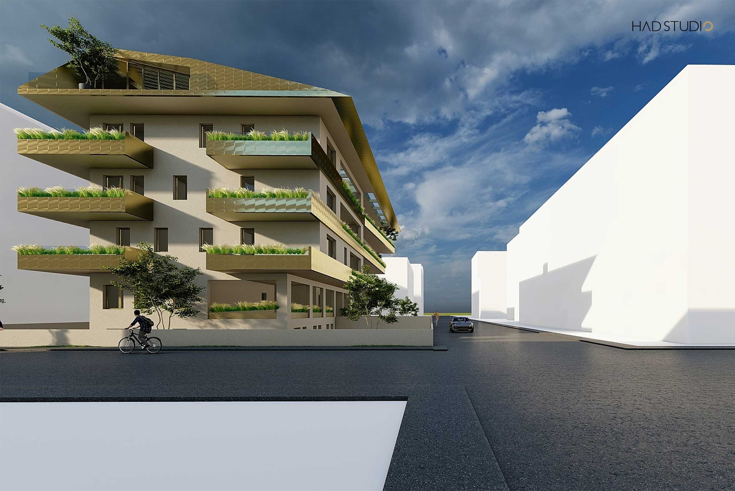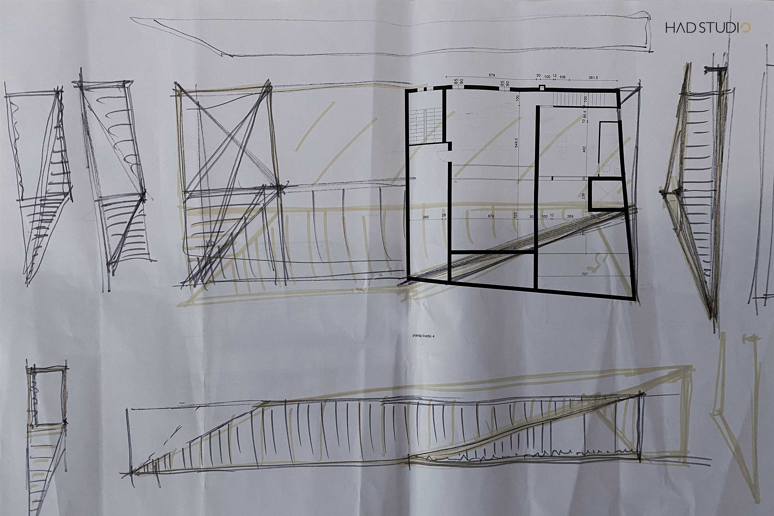 Le sei unità sono state distribuite con differenti metrature ai primi 3 livelli in risposta alle esigenze della committenza, generando al quarto piano un “tetto funzionale” che ospita al suo interno ambienti abitabili con ampi spazi esterni, ponendosi come elemento iconico dell’intero progetto.