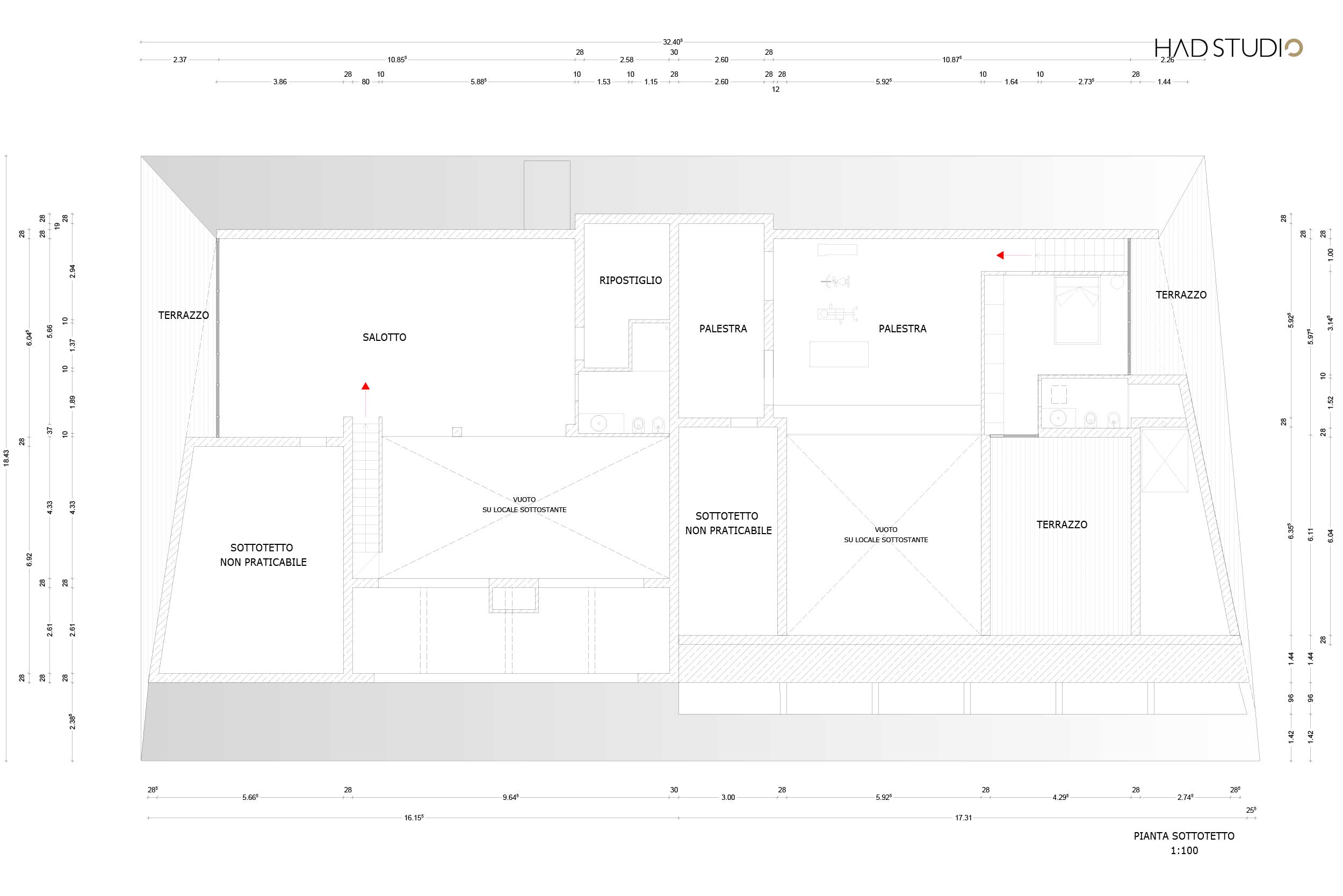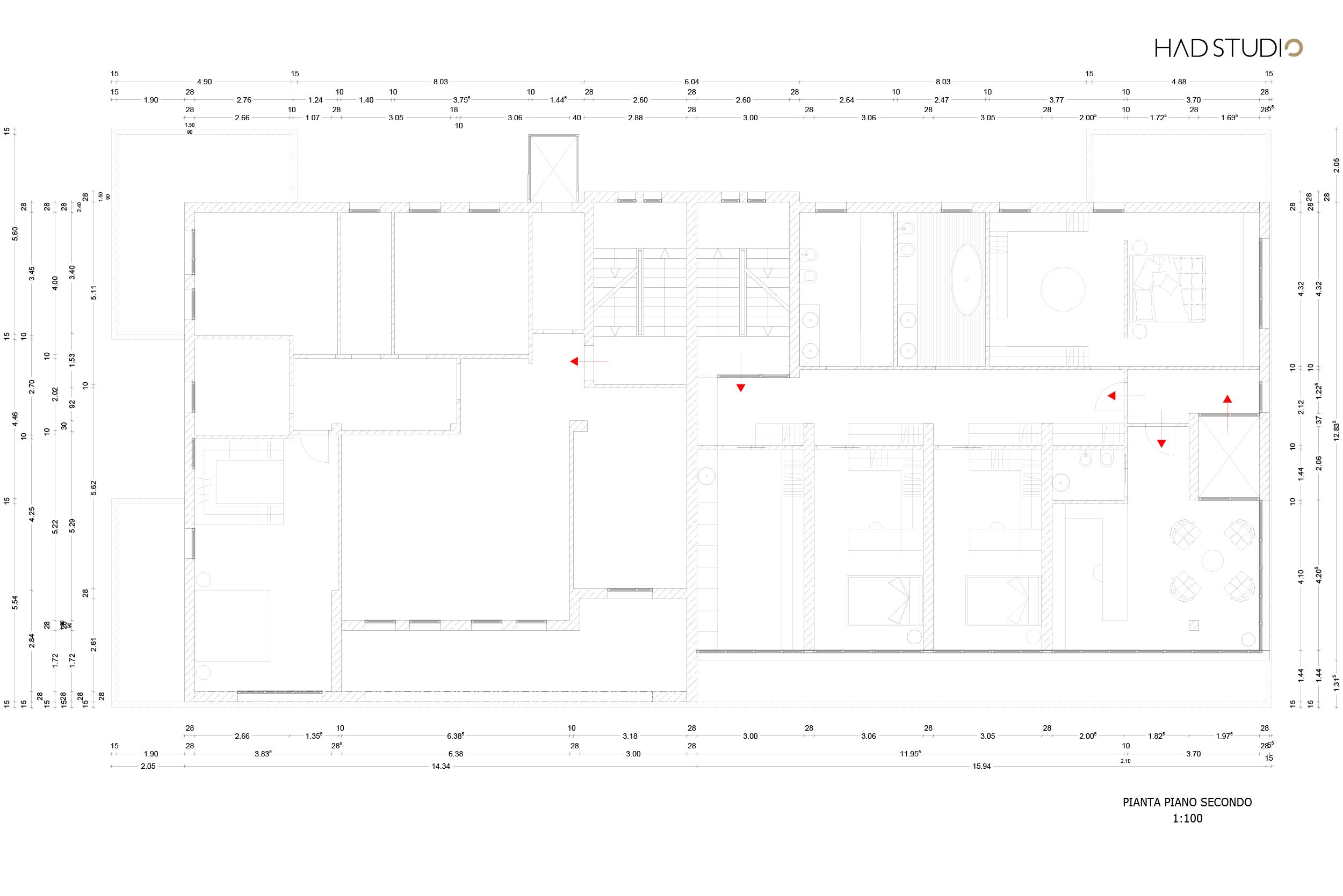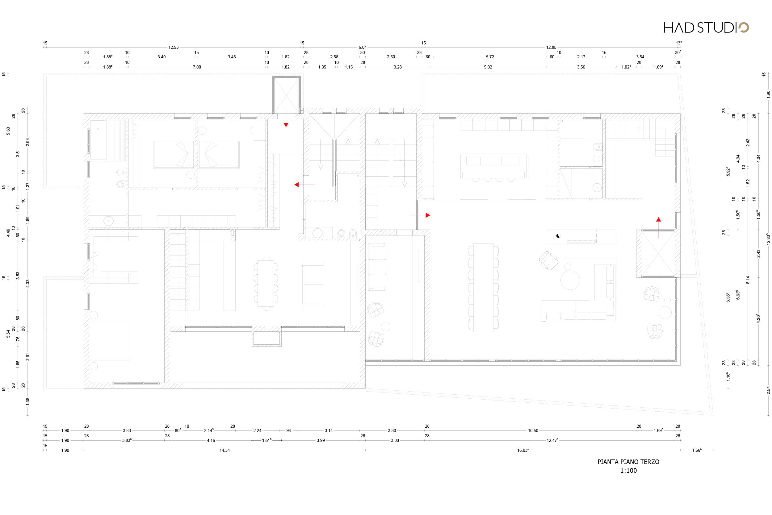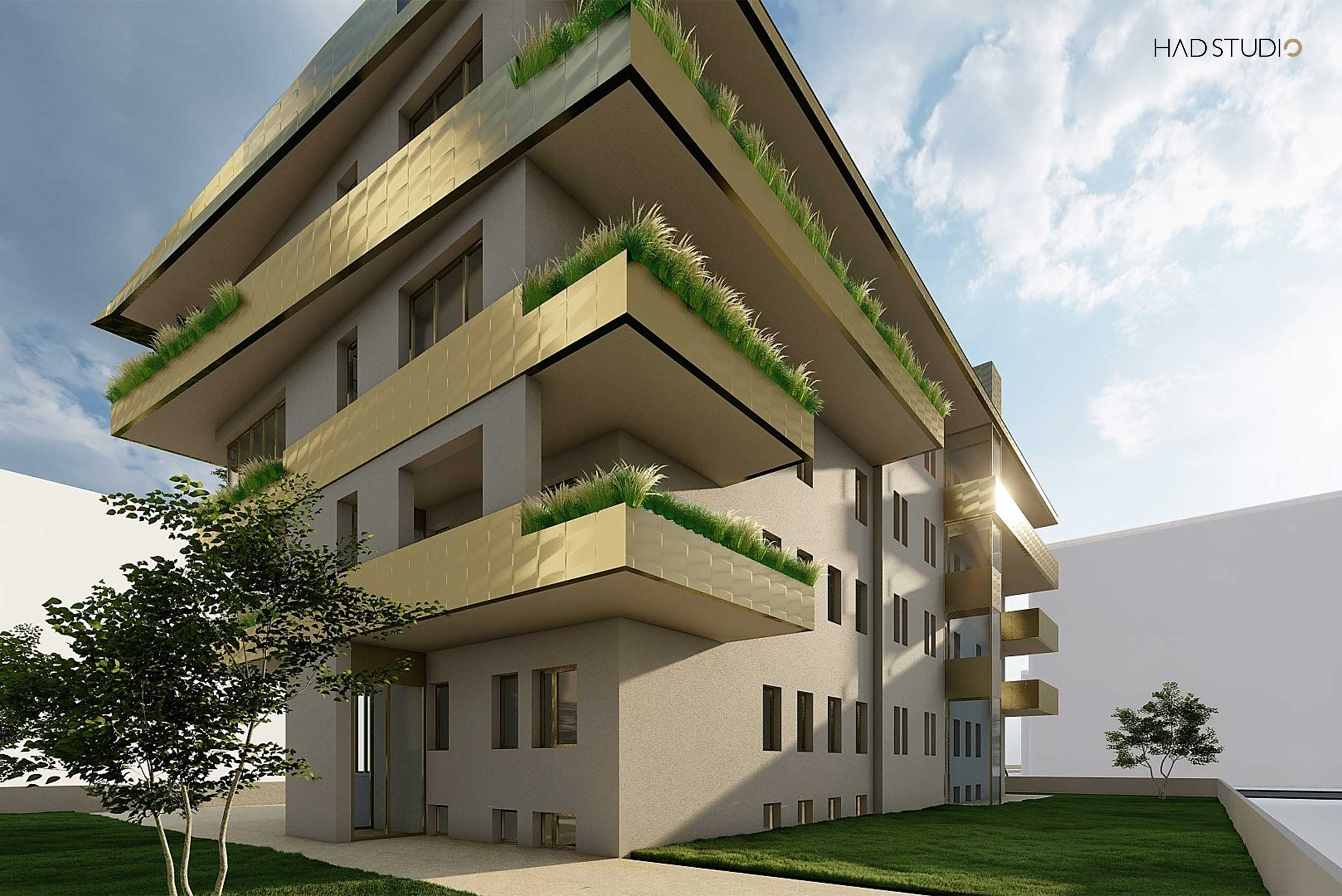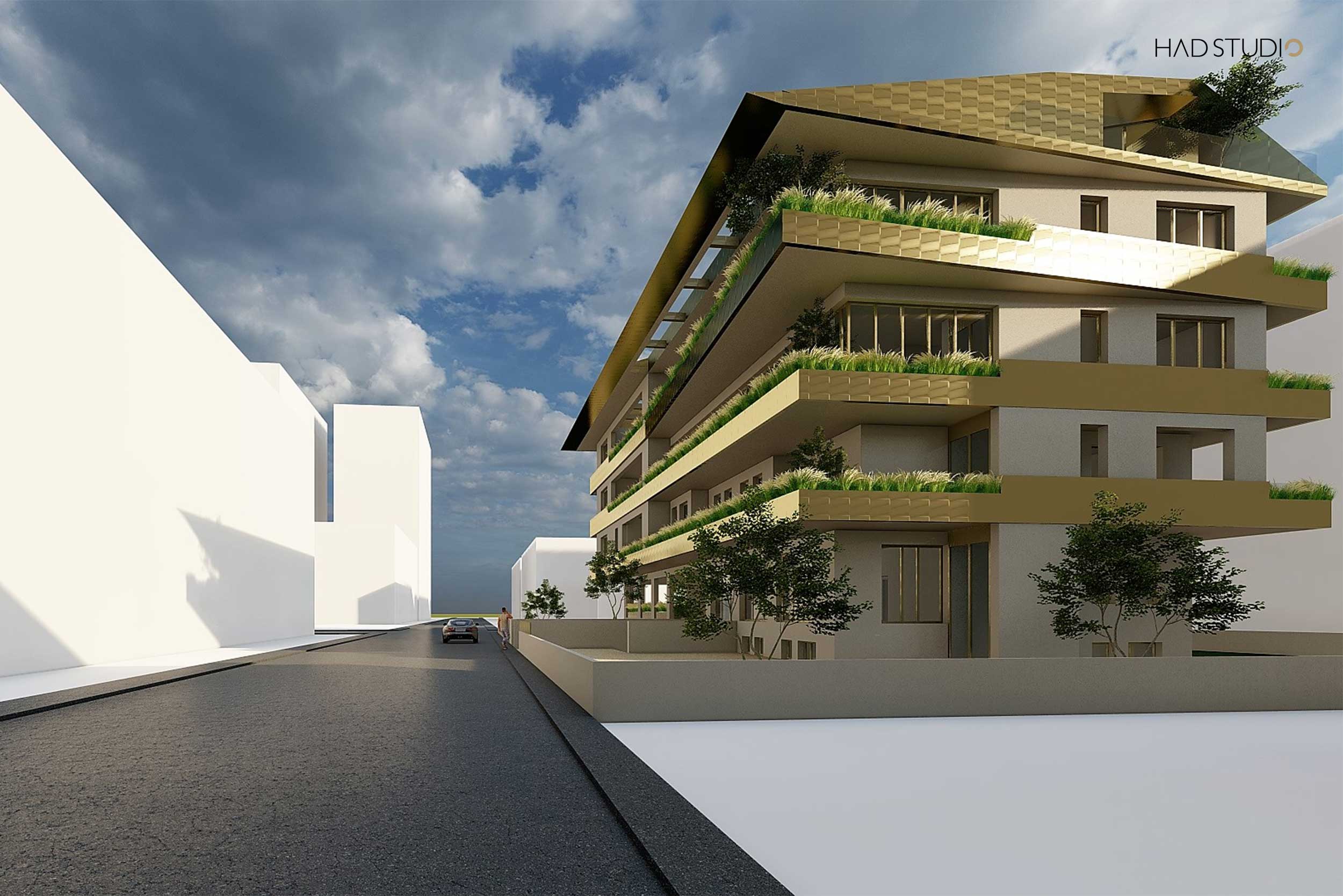 Le sei unità sono state distribuite con differenti metrature ai primi 3 livelli in risposta alle esigenze della committenza, generando al quarto piano un “tetto funzionale” che ospita al suo interno ambienti abitabili con ampi spazi esterni, ponendosi come elemento iconico dell’intero progetto.