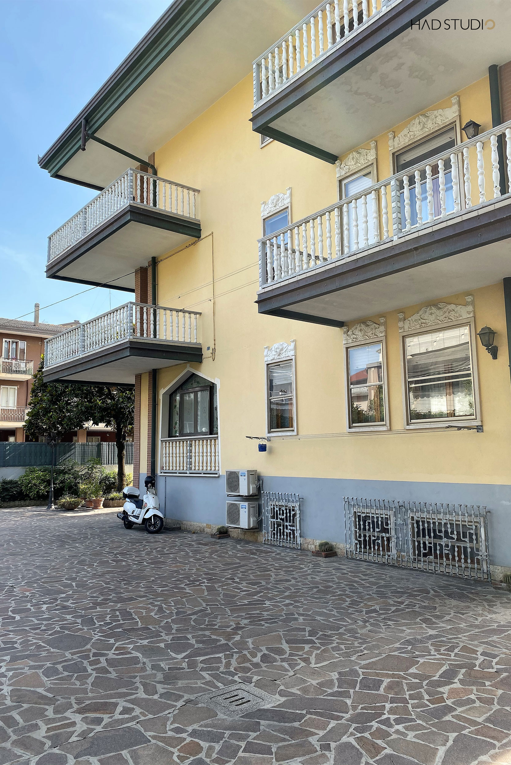 Il progetto di ristrutturazione interessa una palazzina di sei unità, posizionata in un lotto d’angolo con due fronti che affacciano alla viabilità del tessuto urbano di nuova espansione, in un contesto cittadino con edifici che si sviluppano prevalentemente in altezza.