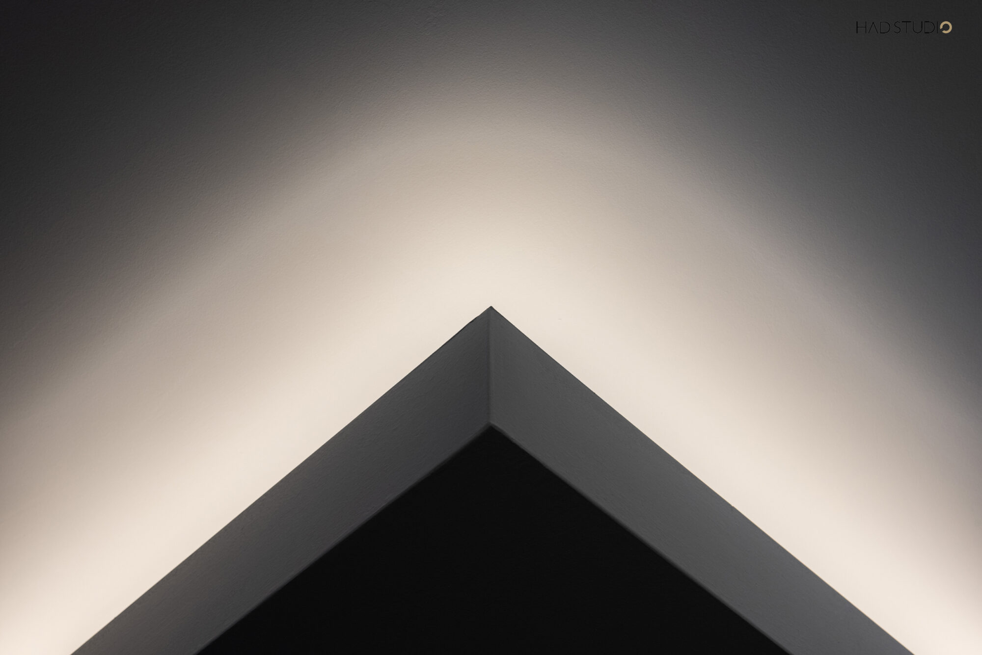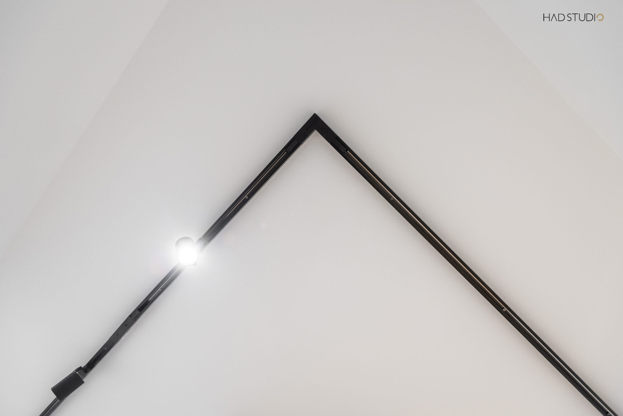La scelta delle colorazioni di pareti, pavimenti e tessuti quindi ha incontrato lo studio attento dell’illuminazione e quindi la scelta dei corpi illuminanti che in questa occasione hanno voluto rimarcare il concetto di modernità e tecnica con l’utilizzo di sistemi a binario di ultima generazione.