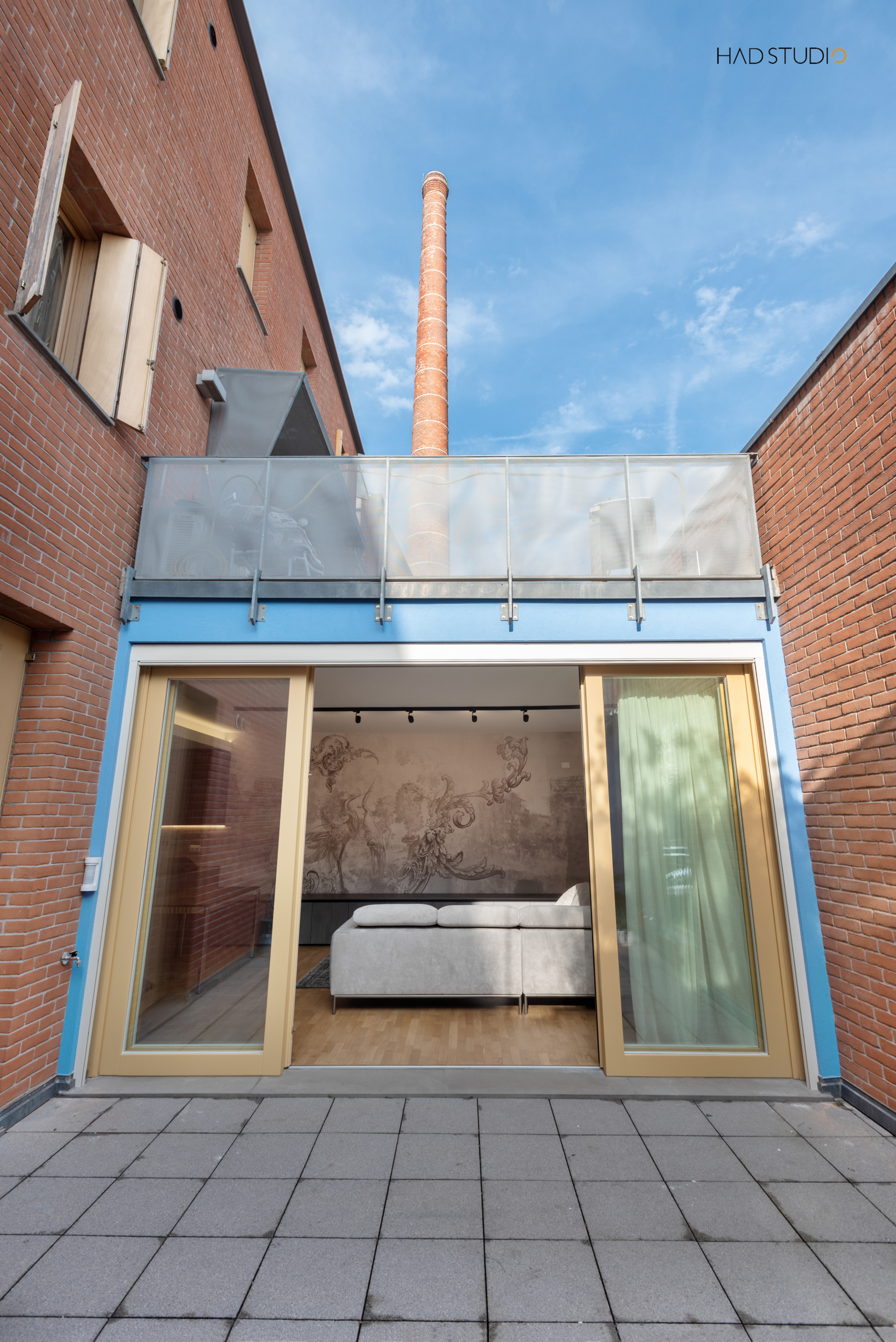 L’intervento ha riguardato la riattazione di uno degli appartamenti più esclusivi per posizione e spazi abitativi. Situato al piano terra, l’unita di 120 mq si caratterizza principalmente per le ampie superfici vetrate e per l’esclusivo patio con vista sulla storica ciminiera in mattoni che identifica l’intero intervento.