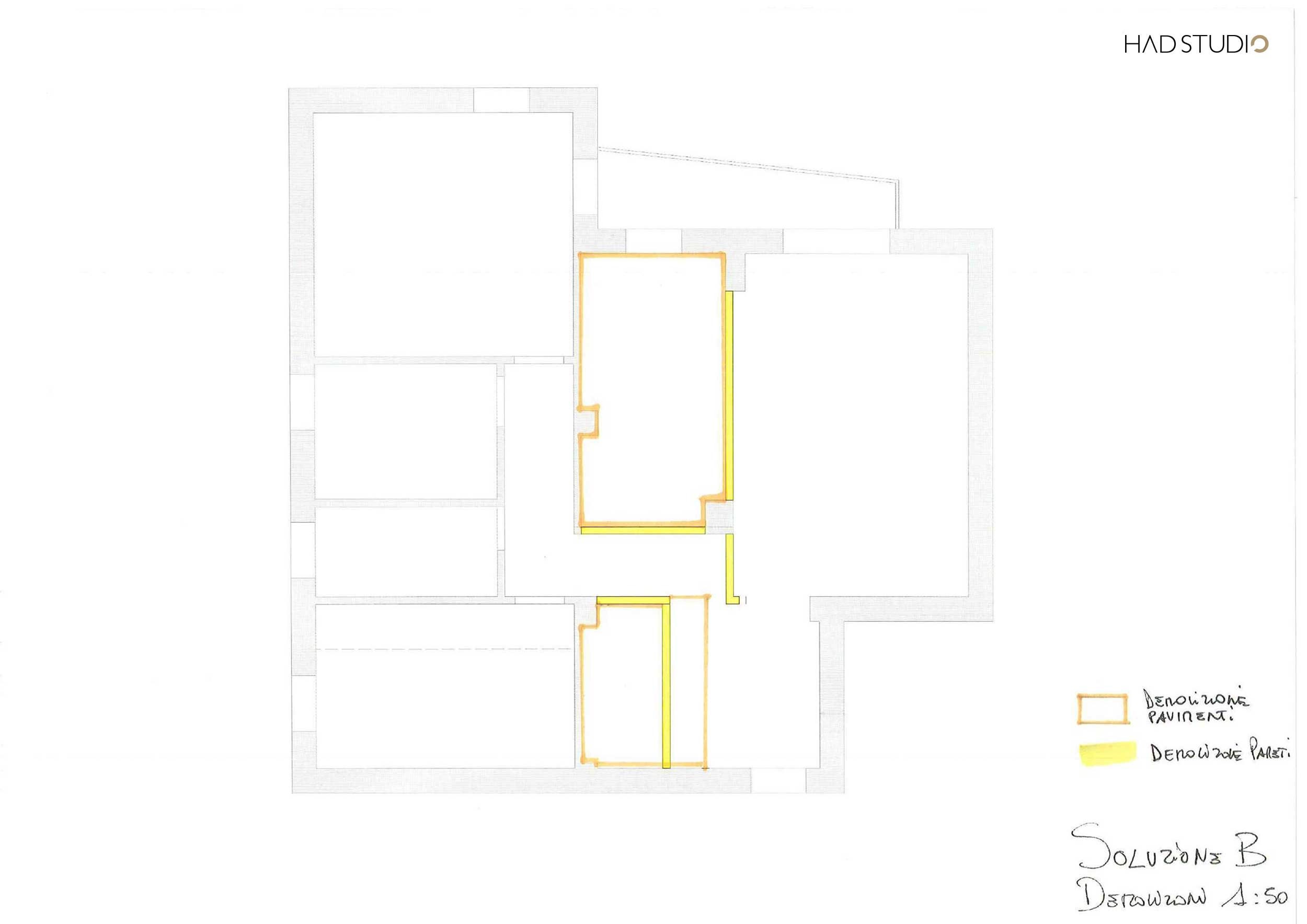 Il pregio di un tempo, dato dal pavimento in marmo nero della zona living, ha guidato le nuove scelte cromatiche, individuando un ritmo architettonico leggero e moderno con colori decisi ed eleganti.